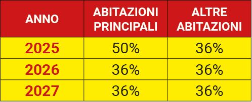 Per gli immobili diversi dalle abitazioni principali, l'aliquota sarà pari al 36% già a partire dal 2025.